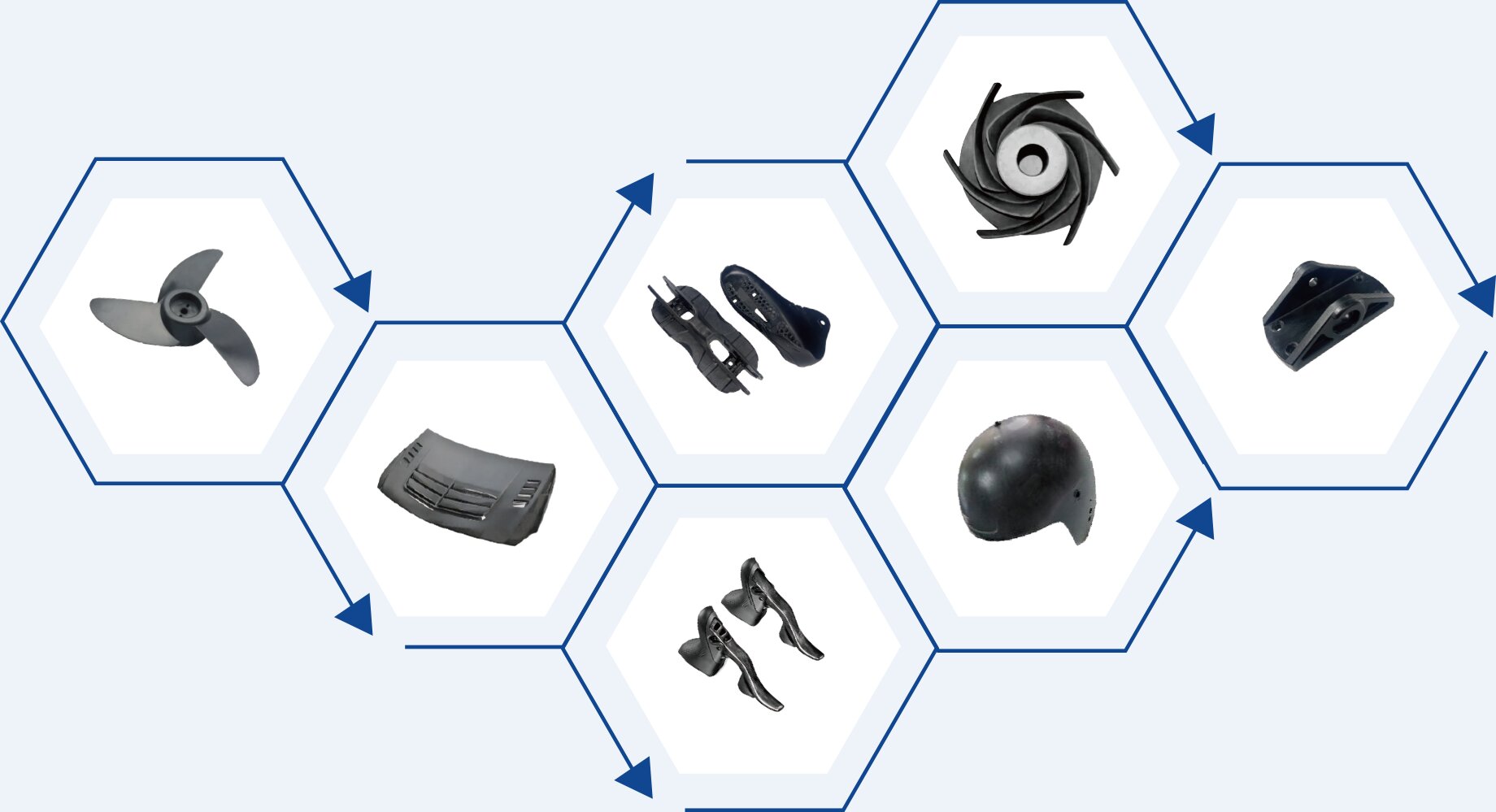 Aerospace: Long carbon fiber-reinforced PPS/PEEK series offer extreme temperature resistance and corrosion resistance.