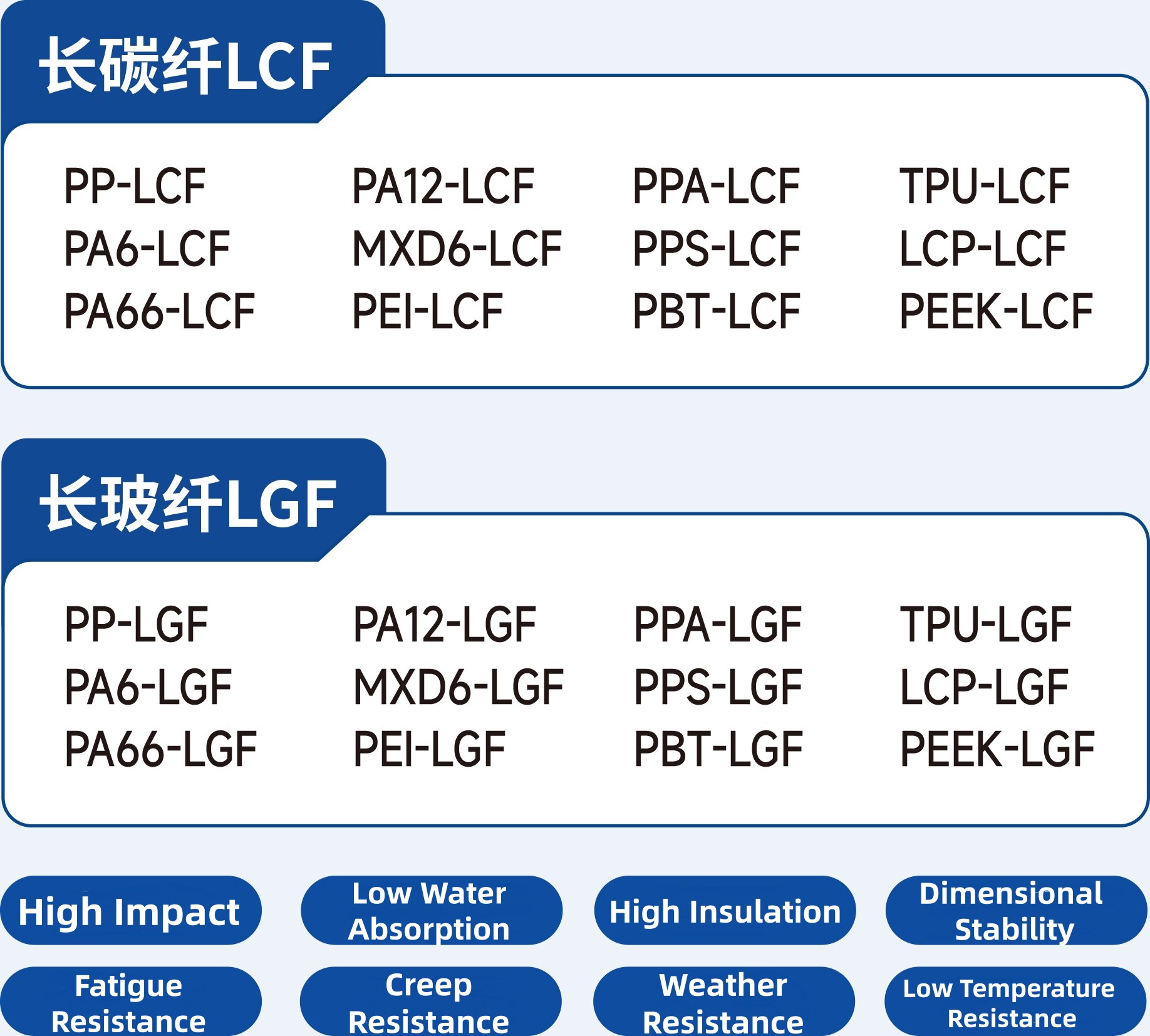 Power & Medical: LGF series features low water absorption and high insulation, suitable for National Grid power transmission and distribution equipment housings. Biocompatible LFT materials are used in high-end medical device components, meeting medical-grade safety standards.